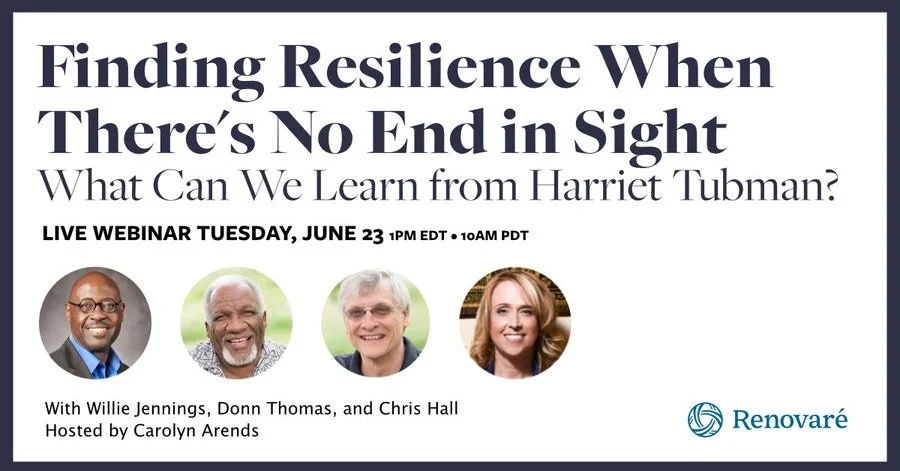 RENOVARE WEBINAR: Join theologian Willie Jennings, musician and Renovaré board member Donn Thomas, Renovaré president Chris Hall, and host Carolyn Arends for a conversation about the practical lessons we can learn and apply from Harriet Tubman’s life, particularly as they relate to the current season. Click the image to register.